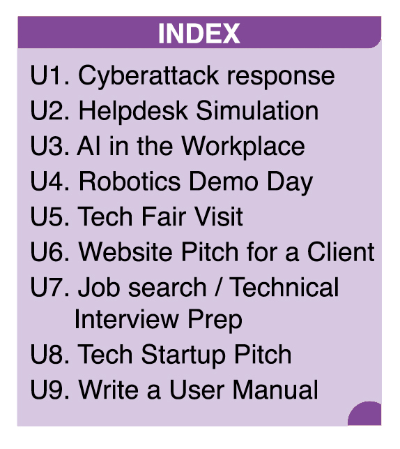 The student’s book includes Project Hub section, where students will work on an engaging project linked to their Vocational Training degree. This way, they put into practice what they have learnt while connecting it to their professional field.