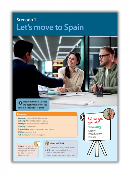Professional English Hub is an easy-to-use, intuitive method that promotes language learning through activities and scenarios linked to real-life situations and the professional environment.