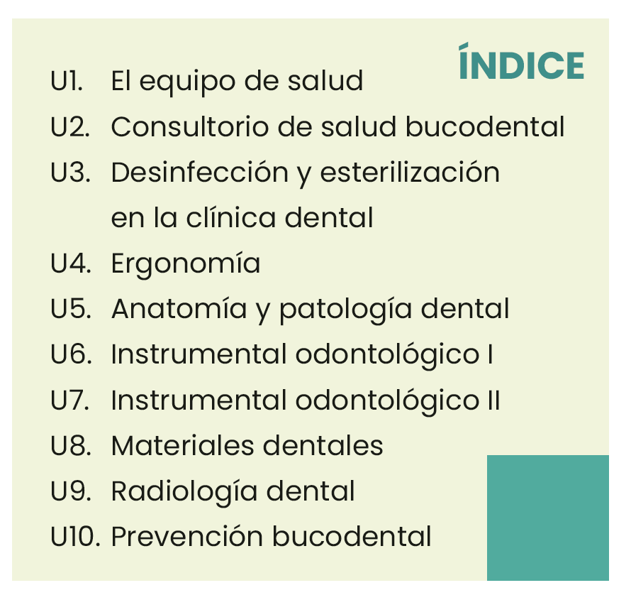 Estos son los recursos disponibles en Advantage para Técnicas de Ayuda Odontológica y Estomatológica: