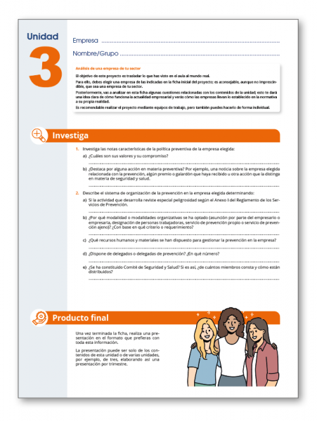Además, el proyecto global conecta la teoría con el mundo real. El alumnado elige una empresa y analiza aspectos clave relacionados con los contenidos de cada unidad. Así obtiene una visión clara de cómo funciona el mundo empresarial actual y descubre cómo las compañías aplican la normativa en su día a día.