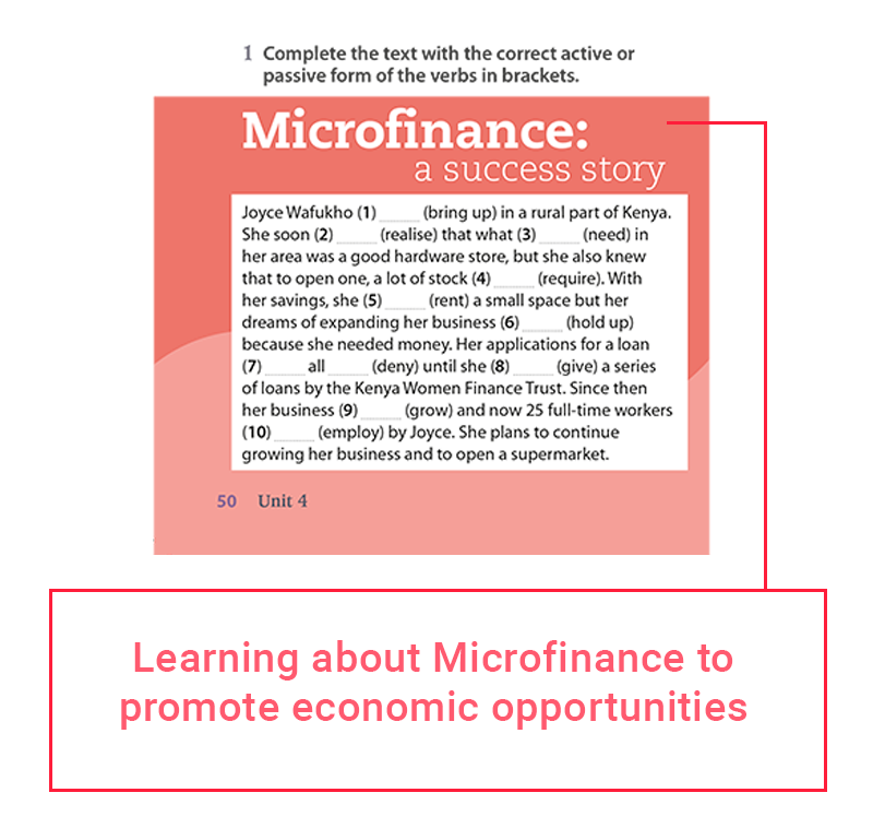 In the English Baccalaureate book, Prospects 2 page 50, we can see an example of how to put SDG 1 into practice.