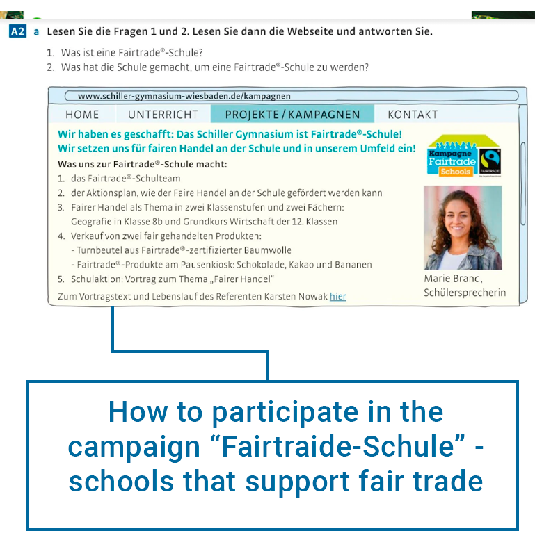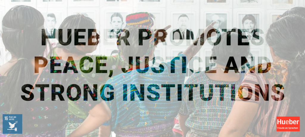 In the German language book, Mit Uns level C1 page 80, we can see an example of how to identify actions to contribute to SDG 16.