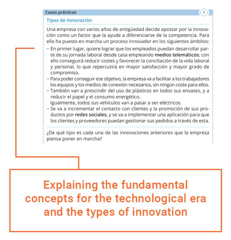 In the Training Cycles book, Empresa y Administración page 96, we can see an example of how to put SDG 9 into practice.