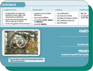 Chaque niveau comporte 6 unités, chacune d’elles est organisée autour de la vie d’un adolescent francophone et de sa ville, de sa région ou de son pays
