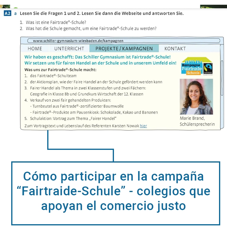 En el libro de alemán, Mit Uns nivel (C1) página 80, podemos ver un ejemplo de cómo identificar acciones para contribuir al ODS 16.