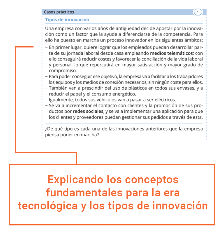 En el libro de Ciclos Formativos, Empresa y Administración página 96, podemos ver un ejemplo de cómo poner en práctica el ODS 9.