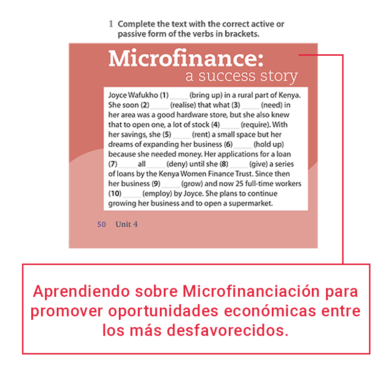 En el libro de inglés de Bachillerato, Prospects 2 página 50, podemos ver un ejemplo de cómo poner en práctica el ODS 1.