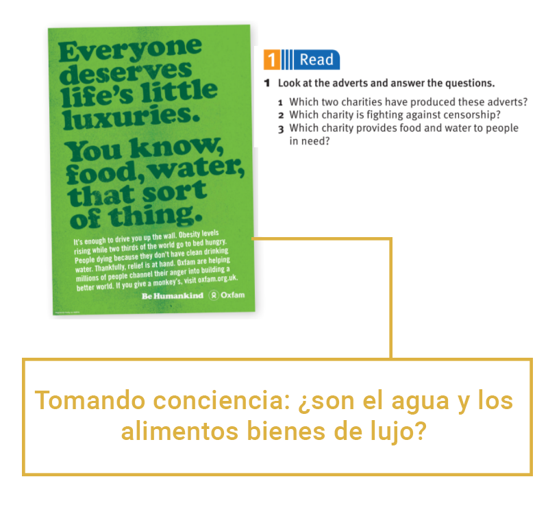 En el libro de inglés de Secundaria, New Pulse 4 página 86, podemos ver un ejemplo de cómo tomar conciencia sobre el ODS 2.