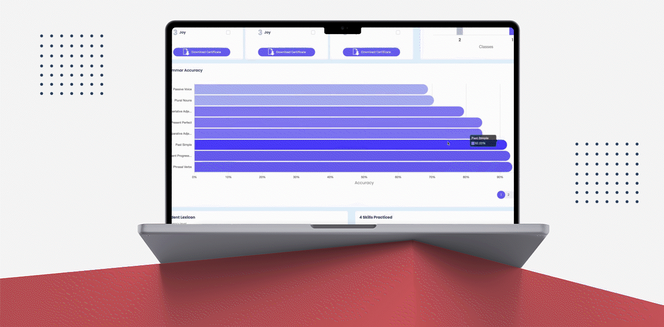 Dashboard with real-time data that enables teachers to personalise the course according to the class’s specific needs.