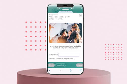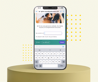 If exercises feel too challenging, students can access optional hints in Spanish, depending on institutional settings.
